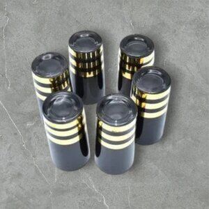 MCM Black with Gold Trim Hi-Ball Bar Drinking Glasses Set of 6 Tom Collins