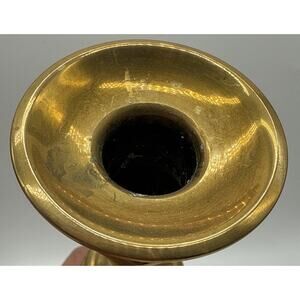 MCM Brass Candlesticks 11” Tall Pair Has Patina Taper Candle Solid Brass. Condition is Used. Shipped with USPS Ground Advantage.