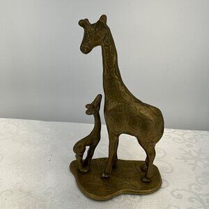 MCM Brass Giraffe Mother & Baby Figurine Statue 7"