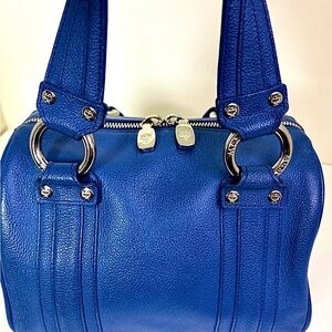 MCM Breathtakingly Beautiful Blue Pebbled Leather Boston Bag