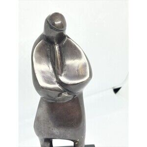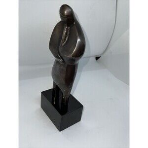 MCM Bronze Abstract Clarinet Player On Wood Stand Unsigned