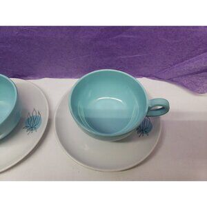 MCM Brookpark Melmac Fantasy Line Joan Luntz 2 Cups & 2 Saucers (6") Turquoise Teal. D7