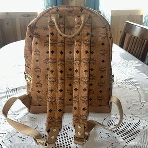 This MCM backpack features the brand's distinctive Visetos monogram in a classic brown shade, highlighted by elegant gold-tone accents. Made from high-quality coated canvas, it embodies a luxurious and timeless style.