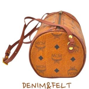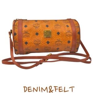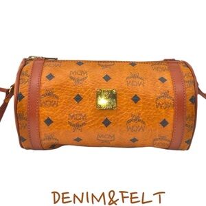 MCM Brown Visetos Leather Vintage Barrel Shoulder/Cross Body/Shoulder Bag/Purse