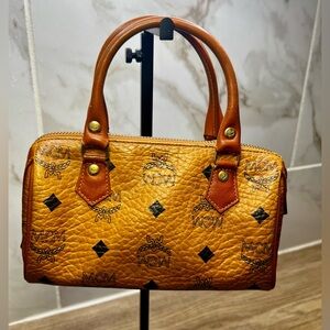 MCM Brown and Black Nano Boston Bag in Cognac and Black Monogram - EUC