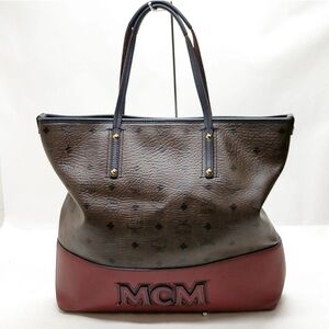Elegant MCM tote with rich burgundy and brown leather. Spacious design with durable handles. Ideal for daily use.