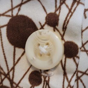 MCM Button Up Blouse Top Cream Brown Geometric Atomic Pattern Size 36 Small