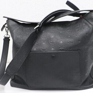 MCM Calfskin Ottomar Monogram Large Klara Shopper Tote - Black