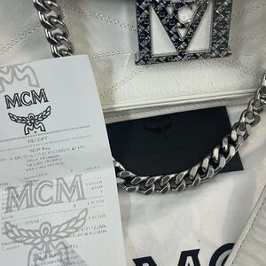 MCM Calfskin Quilted Mena Shoulder Bag in White