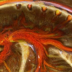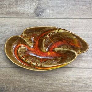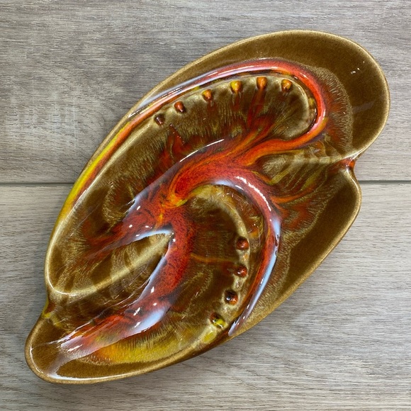 CALIFORNIA ORIGINALS pottery 821 mid century modern fire lava glaze abstract ashtray. A stunning ceramic piece with Eames worthy style perfect for that 60's 70's hippie chic decor. In excellent condition, no chips or flaws.