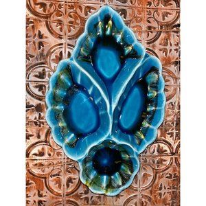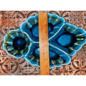 MCM California Pottery 4 Section Candy/Nut Dish Blues and Greens