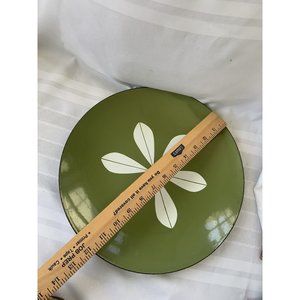 MCM Cathrineholm Lotus Enamelware Avocado Green And White 12" Charger Plate