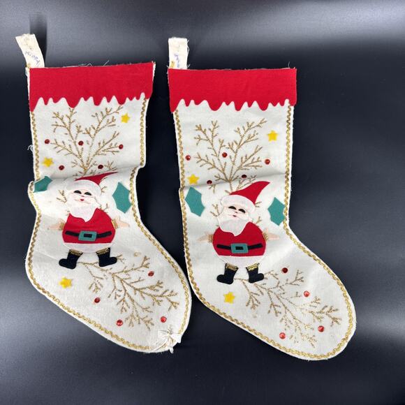 MCM Christmas Stocking Santa Claus Felt Applique Made In Japan 1950s Holiday Lot