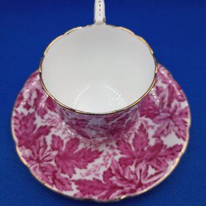 MCM Coalport Maple Time Demitasse Cup & Saucer Pink & White English Bone China