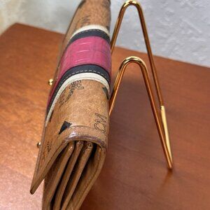 MCM Cognac Pink Black Visetos Tri-fold Wallet.