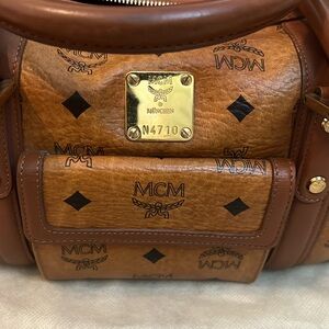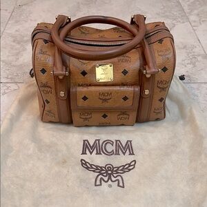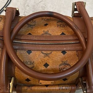 Stylish MCM duffel bag in signature Visetos print. Features durable leather handles and gold-tone hardware. Perfect for travel or daily use.