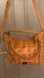 Elegant MCM bag in cognac leather. Features black logo details. Gold hardware enhances style.