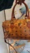 Stylish MCM satchel in signature Visetos print. Features rich cognac color and gold-tone hardware. Ideal for everyday elegance. Featuring double handles, zip closure, crossbody strap, feet, and 2 interior pockets. She shows wear throughout such as rubs, hardware tarnish & discoloration, interior stains, needs cleaning, has marks, no interior labels, so I don't know where she was made, but with all that it doesn't deminish the overall beauty or functionality of this luxury vintage item