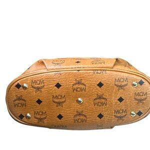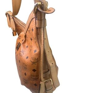 Stylish MCM shoulder bag in signature Visetos print. Features adjustable strap and gold-tone accents.