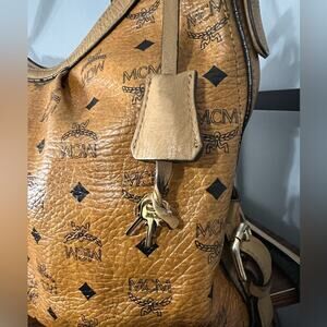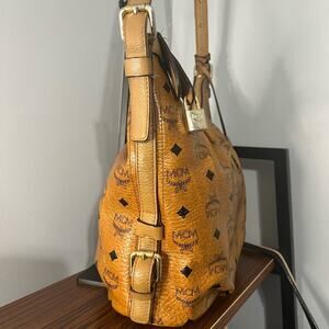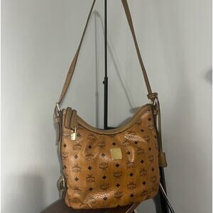 MCM - Cognac Visteos Coated Canvas & Leather Shoulder/Hobo Bag