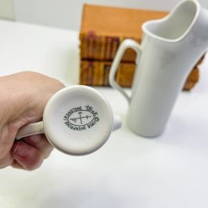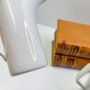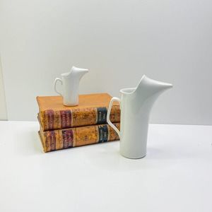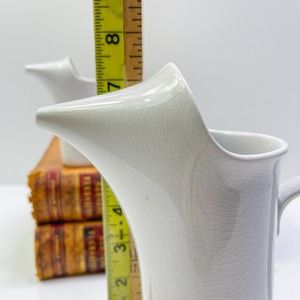 Simply Stunning and RARE MCM Ironstone Porcelain Pitchers by Lagardo Tackett for Schmid. These are made of porclin and have substantial crazing, but there is not a single flea bite or chip in either one of these pitchers.