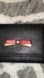 Chic MCM wallet in black. Features a red and gold bow accent. Ideal for stylish organization.