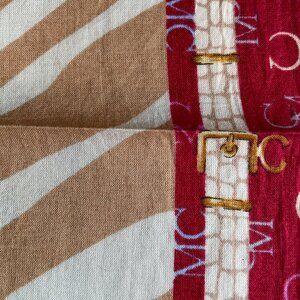 A striking and collectible MCM accessory — versatile as a pocket square, neckerchief, or handbag accent.