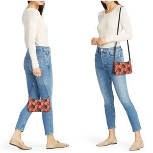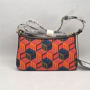 Cubic Monogram Jacquard & Leather Crossbody in red cubic monogram jacquard and black leather and gold-tone hardware