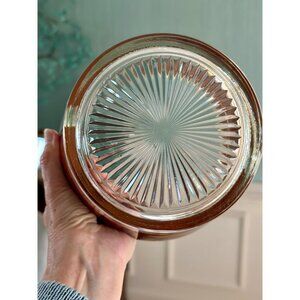 MCM ice bucket by Culver in the tortoise pattern - it features a wide tortoise shell colored band with 22K gold accents. The base features a radiating cut star in the glass. It's part of a MCM bar set - very sleek and sophisticated. It's in very good condition. The photos may make it look like the gold as flaws but that's only reflections. I showed a few more pics in a different setting that shows that the condition is good. It measures 7" in diameter at the top, 5.5" at the botton, and is 4.25" high. It would be a great gift for your MCM friend or for yourself.
