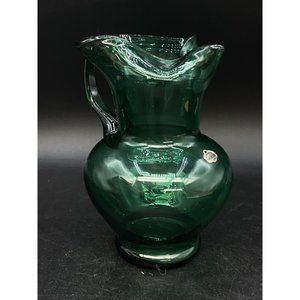 MCM Empoli Guildcraft Italy Green Pitcher Pinch Spout 6.5” tall