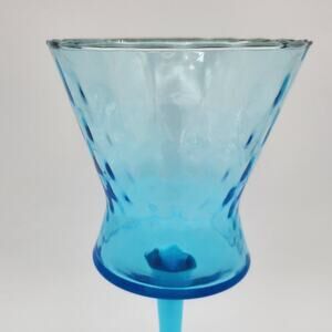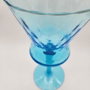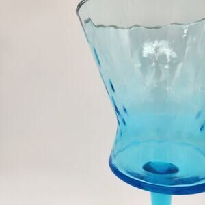 MCM Empoli Italy Azure Blue Long Stem Hand Blown Art Glass Scalloped Rim Vintage