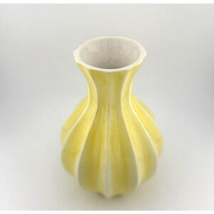 MCM FTD Flower Vase Solid Creamy Yellow White 7 inches tall with Ribbed design