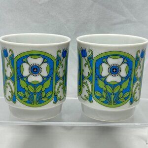 MCM Floral 60's Coffee Mugs Retro 8 oz Cups Japan Set of 2