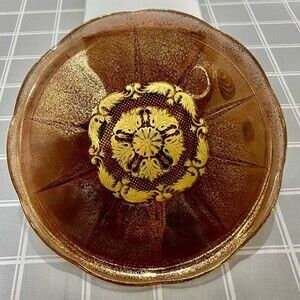 MCM Georges Briard Bronze Brown Gold Scalloped Edge Footed Cake Stand Round Plate Clear Rounded Dome Glass Base