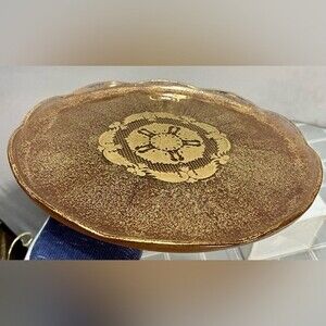 MCM Georges Briard Bronze Brown Gold Scallop Edge Footed Cake Stand Round Plate