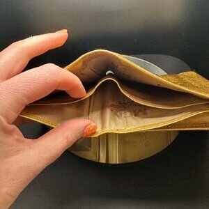 MCM Gold Leather Studded Tri-Fold Wallet- EUC