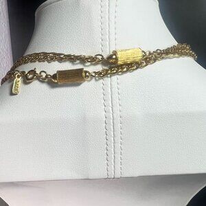 Elegant vintage accessory set featuring a layered chain necklace with textured beads and matching button-style clip-on earrings for a refined look.