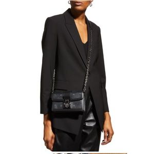 Detachable, sliding chain crossbody strap can be doubled, 22" drop