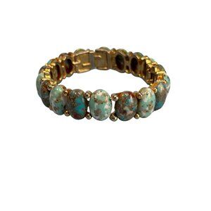 This vintage HAR bracelet tells a story of timeless elegance and mid-century craftsmanship. Adorned with striking turquoise stones, its hinged design ensures both comfort and style, while the gold-tone finish adds a touch of luxury. A true collectible piece signed by HAR, perfect for lovers of unique and storied jewelry.