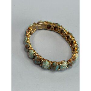 Gold-tone shows minor wear consistent with age, stones in excellent condition. Circumference = 6 inches.
