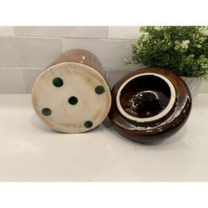 This canister features a beautiful, rich mushroom-brown glaze and a unique, eye-catching mushroom cap lid.