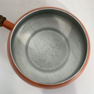 MCM Japanese Orange Floral Fondue Pot Wooden Handle VTG