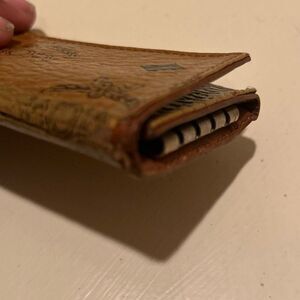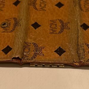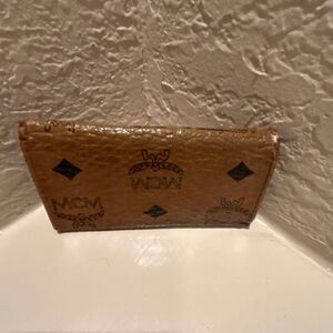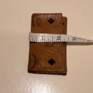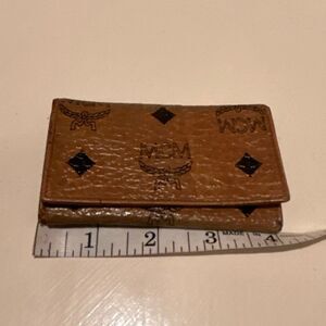 MCM Key Holder All Over Logo Print Golden Brown Leather 4 Ring Key Case