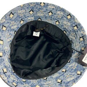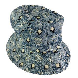 MCM Light Blue Fedora Monogram and Diamonds Print Bucket Hat Jacquard
