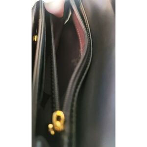 The gorgeous purse is matched up with a croc embossed wallet, however the wallet has gold hardware and the purse has silver- what's wrong with a little bit of variety. The wallet is clean, clean, clean. It is a tri-fold wallet, with black interior and not a spec of dust or any coin residue anywhere. There is a tiny scuff near the gold plate on the front - see pics.