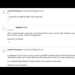 @123siah excuse me sir but if you were interested in the bag and a lower price all you had to do was ask. Please read my description before as I did mention that I was open to offers... My price is listed at this cost for two difference 1. Poshmark duties and 2. If I listed the cost I would take people would try to low ball me from that.