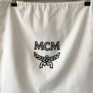MCM Logo Large Dust Bag 100% Cotton Drawstring Closure White Black NWOT