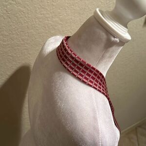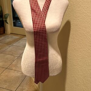 MCM Mens 100% Silk Neck Tie Maroon Red Column Checkered Holiday Christmas Office