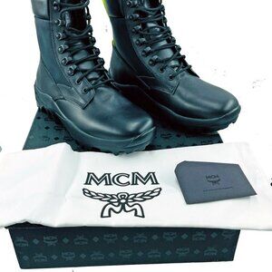 MCM Men's Black Leather Reflective Patch Boots w/Yellow Pull MEX 9AMM83 BK sz 41