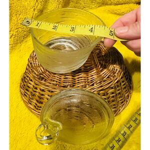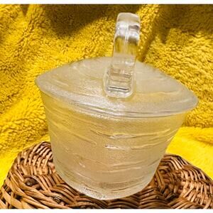 MCM Mid Century Birch Wood Patterned Glass Sugar container with Lid home decor